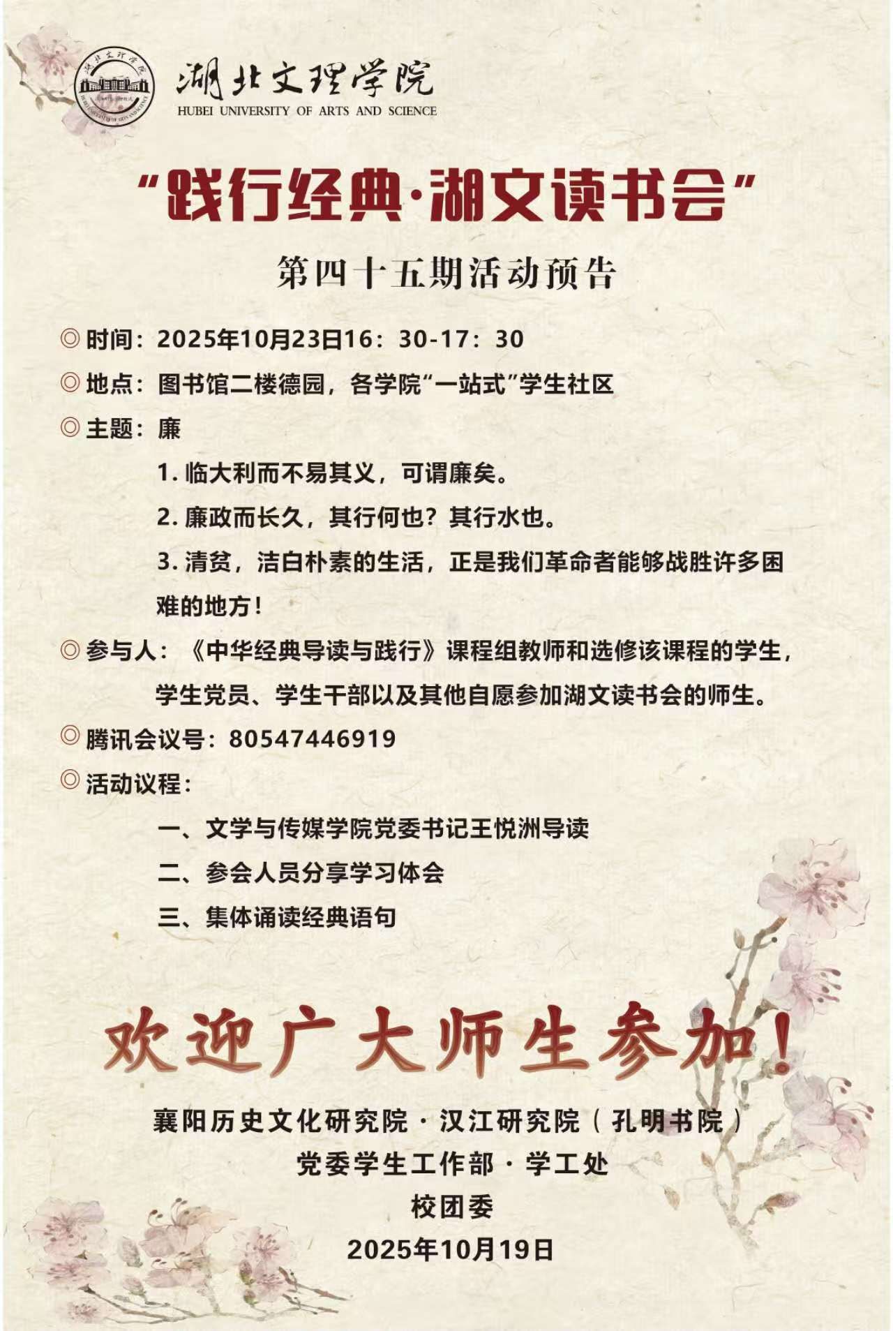 “践行经典-湖文读书会”第四十五期活动预告