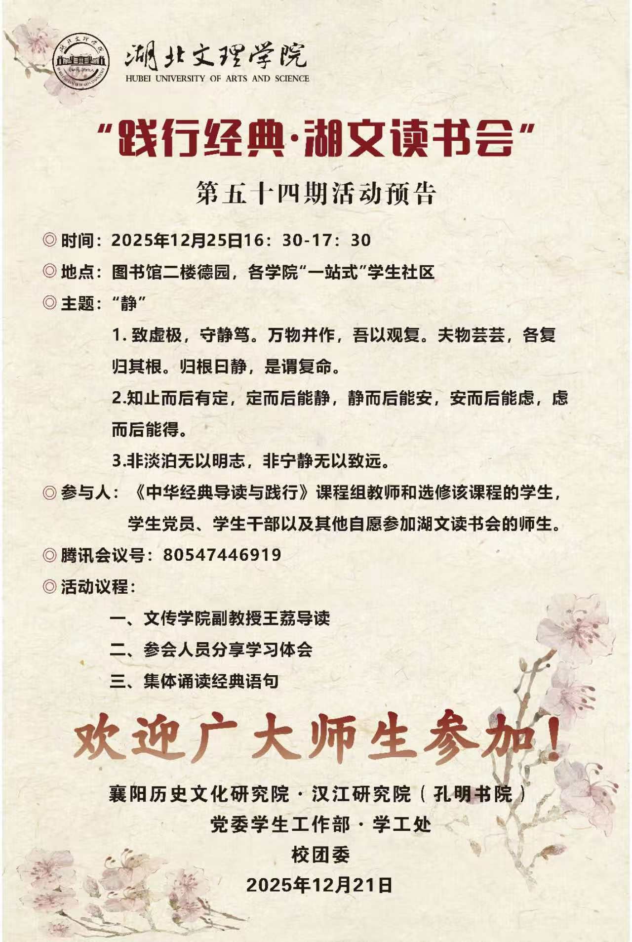 “践行经典-湖文读书会”第五十四期活动预告